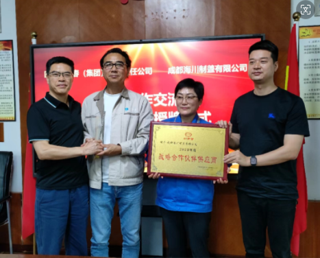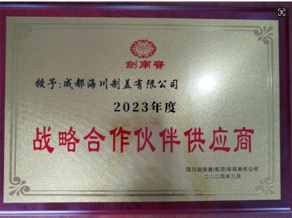 2024年4月18日,四川剑南春集团有限责任公司与成都海川制盖有限公司战略合作交流暨战略供应商授牌仪式在成都海川制盖有限公司举行。剑南春集团采购处处长谢维清、经理齐文凡,以及成都海川董事长罗田、总经理李绪英出席本次战略合作授牌仪式。